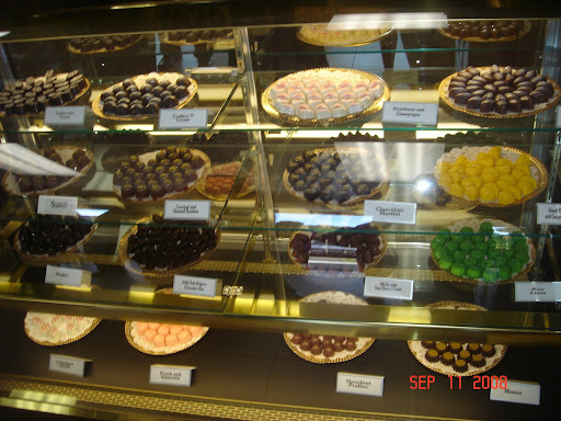 Connie Matey and John Matey from Chocolate Creations by Connie (http://www.chocolatesbyconnie.com/) receive a warm welcome from Honorary Mayor Elayne Bassinger (r)